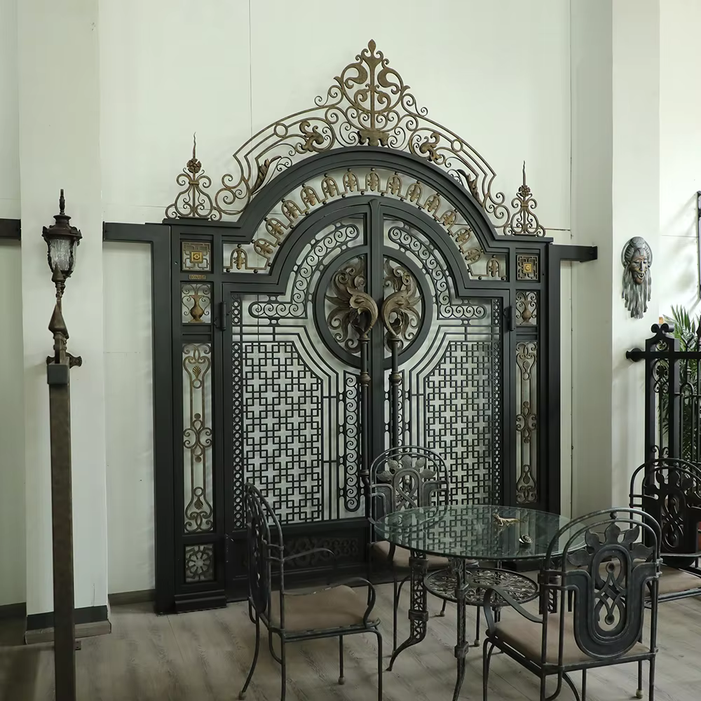 Handmade Forged Iron Door Courtyard Villa Private House Custom Swing Open Style Outdoor Park School Hotel Hospital Applications